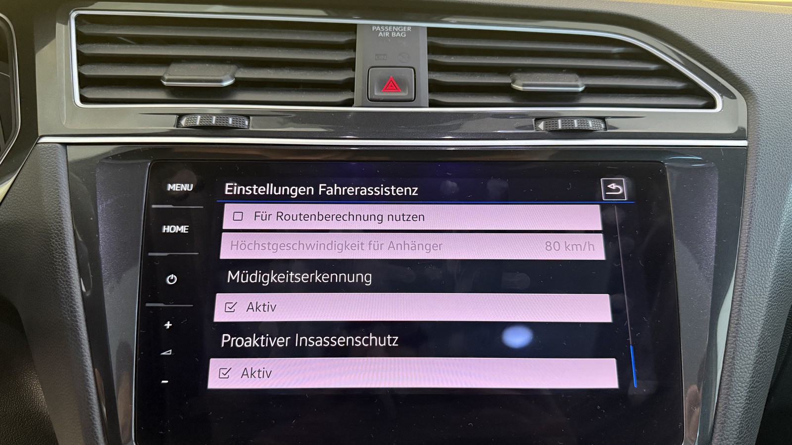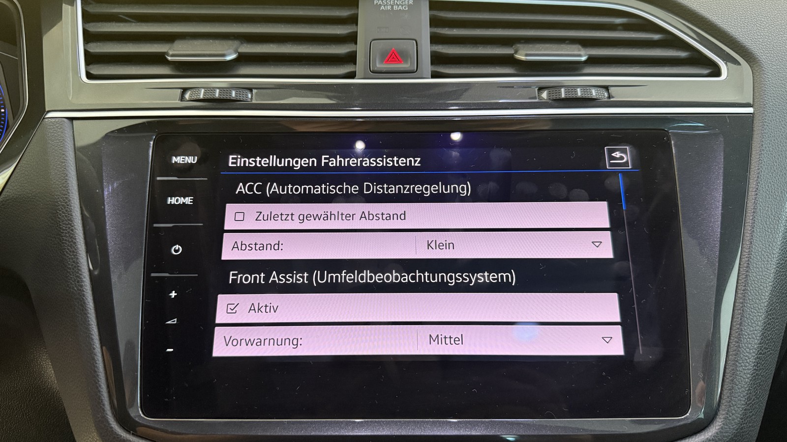 - Fahrassistenz-System: Autom. Distanzregelung (ACC) mit Umfeldbeobachtungssystem (Front assist, bis 210 km/h)