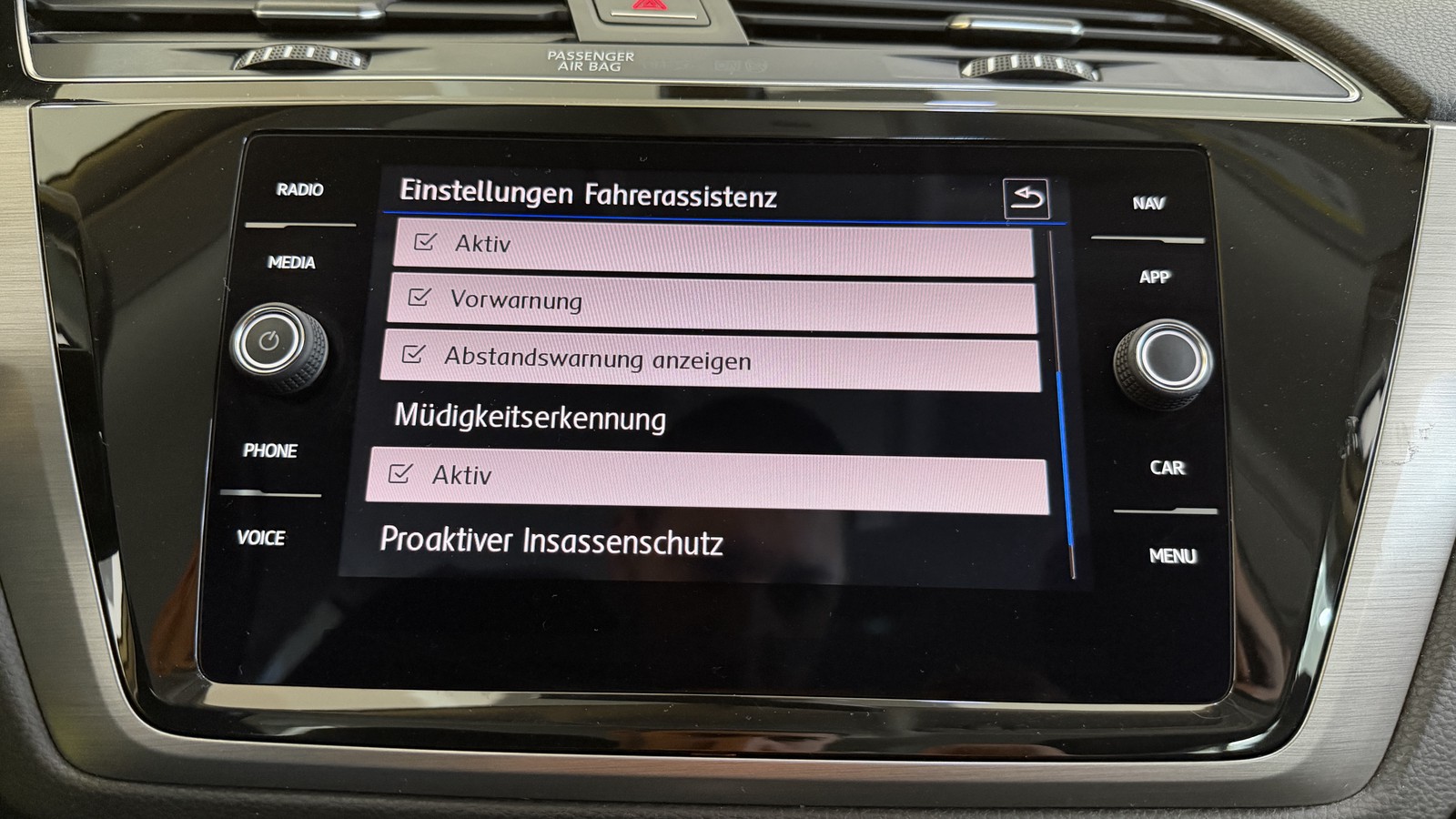 - Fahrassistenz-System: Autom. Distanzregelung (ACC) mit Umfeldbeobachtungssystem (Front assist, bis 210 km/h)